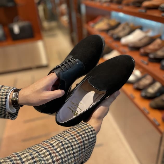 意外となかったんですね、ALDENのスリッポン・ブラックスエード‥