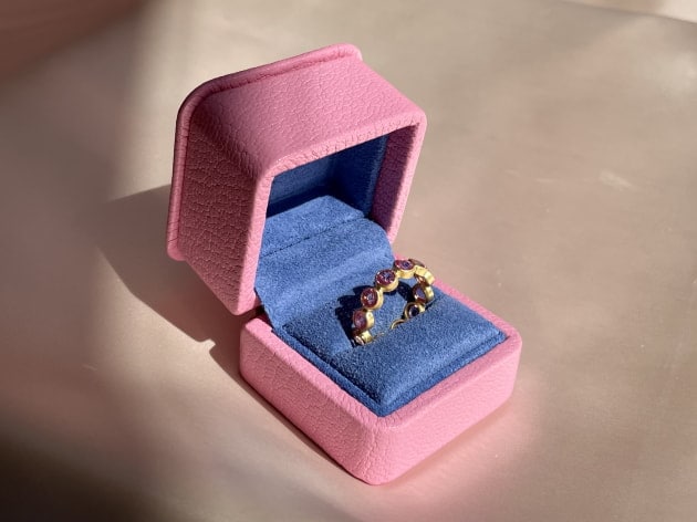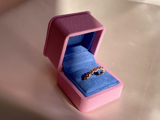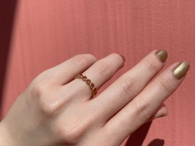 MHTの中でも、アイコニックなクローバー。ピンクのハートを4つ集めた幸福でロマンティックなモチーフ。華奢なリングアームですので、MHTらしい重ね付けのコーディネートもお勧めです。