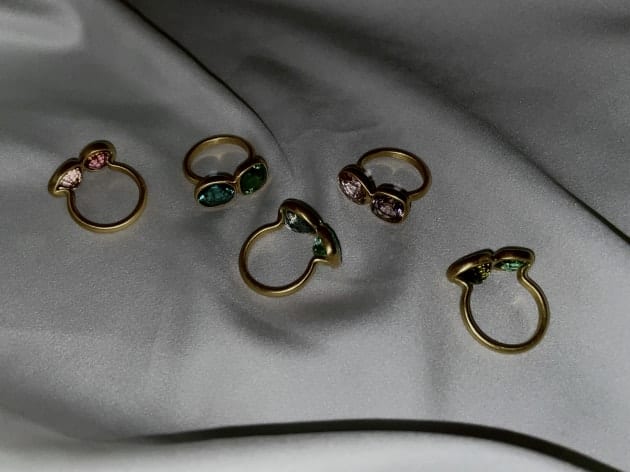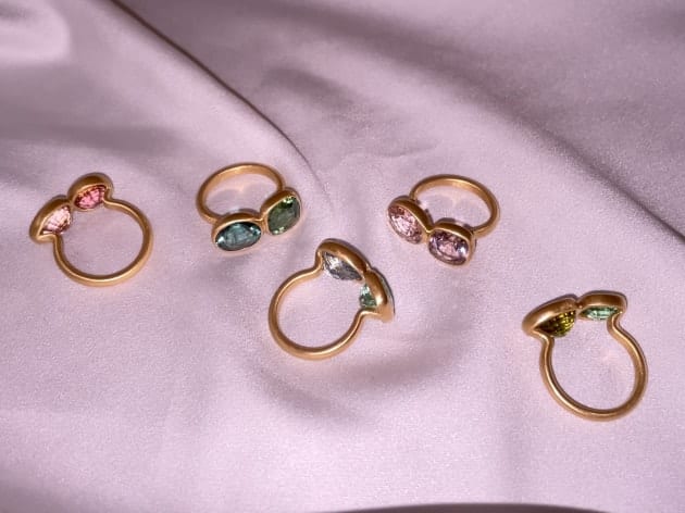 左:<ピンクトルマリン&ファイヤーオパール/デュエットリング>