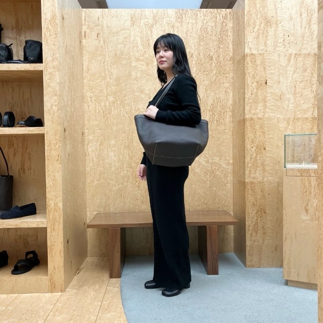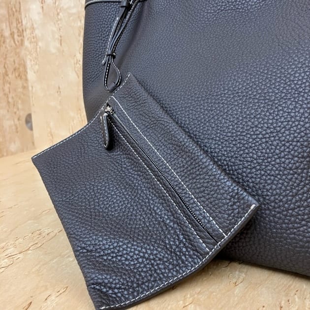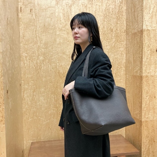 広めのマチが実用性を高め、見た目以上の収納力を実現。シンプルながら素材とシルエットの美しさが際立ちます。