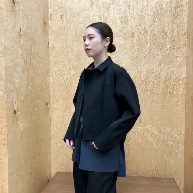 袖はスナップボタン付きのベンチレーションを配し、体温調整がしやすいディティール。襟は気候に応じてアレンジが可能なコンバーチブルカラー、都市生活に寄り添う、実用性と洗練が共存するジャケットです。