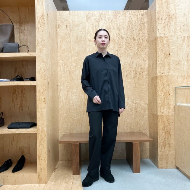 大人の女性には洗練されたモード感を意識したスタイリングがおすすめ。シンプルなタートルニットやストレートパンツ、足元はブーツで引き締めると上品な印象にまとまります。