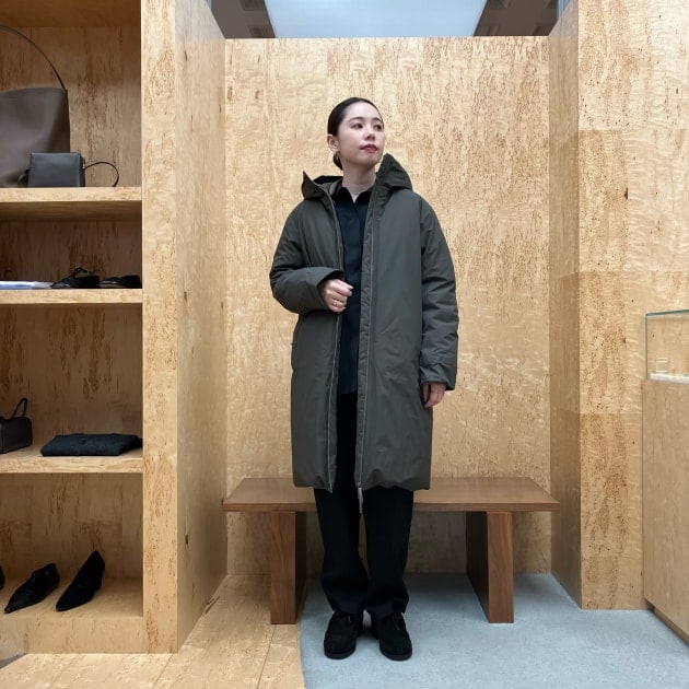 【Belfry Jacket】撥水加工を施したウール混紡素材を使用し、スタイルと機能性を兼ね備えた一着。アシンメトリーファスナーが風の侵入を防ぎつつ、デザインのアクセントに。パンツスタイルはもちろん、女性らしいスカートやワンピースとコーディネートすると、程よい抜け感が生まれます。ブーツなど、足元にアクセントをプラスすると、季節感のあるスタイリングをお楽しみいただけます。