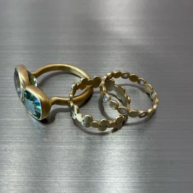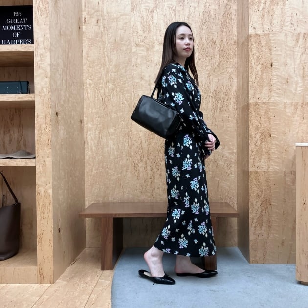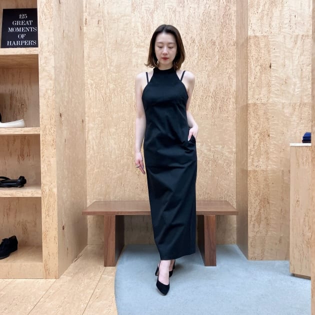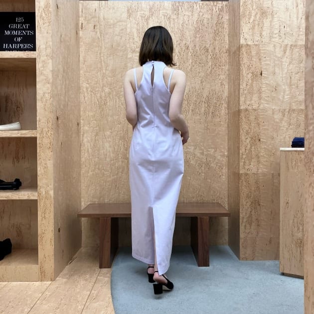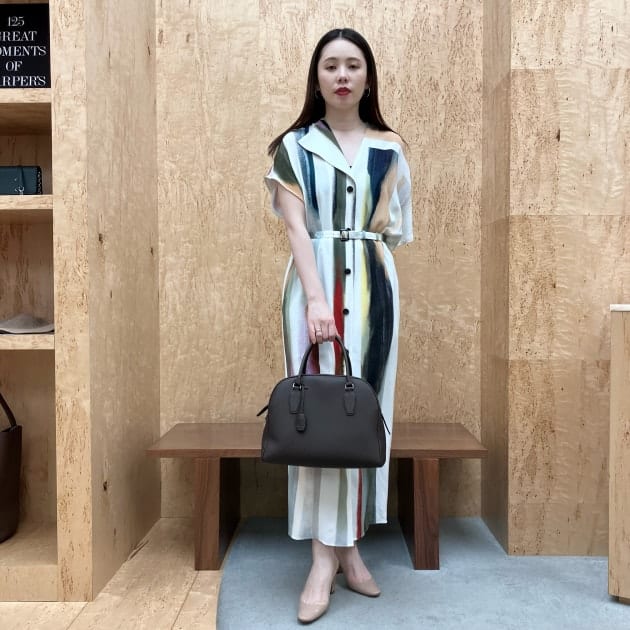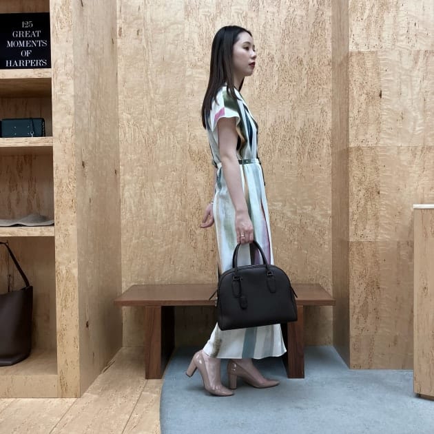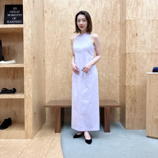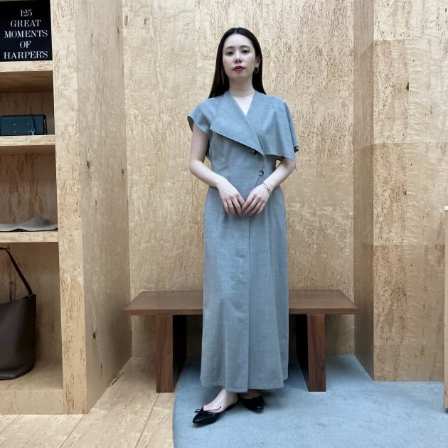 フロントはミニマルな印象で、バックスタイルに施したタックで軽やかさや立体感を演出しています。