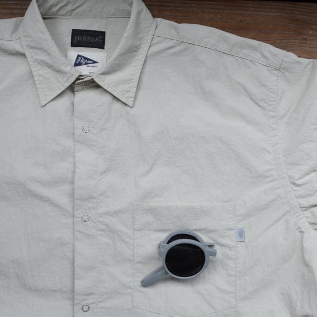 紫外線対策としてこのサングラスをお勧めしたい理由は、31gという圧倒的な軽量性と、折りたたみコンパクトに収納ができるからです。今の季節は夏のような日差しの強さは無いので、サングラス無しでも不快感はないですし、サングラスを持ち歩く方がむしろ面倒だと感じます。その点このサングラスは、胸ポケットに収まるサイズ感で、常に持ち歩きたくなるデザインなんです。