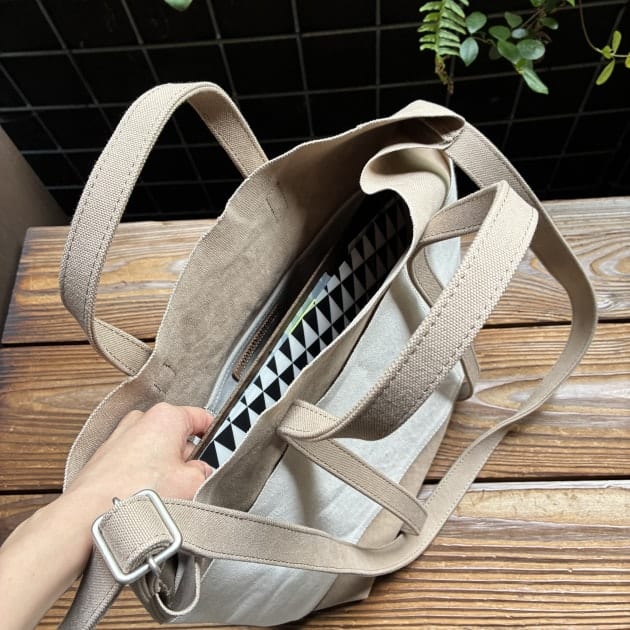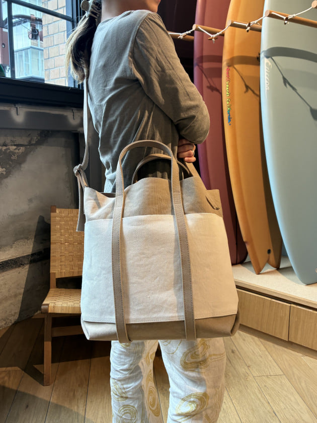 ミニマルなデザインにタフなキャンバス生地、たくさんのポケットやショルダーストラップなど、デザイン性と実用性を兼ね備えたショルダートートバッグです◯