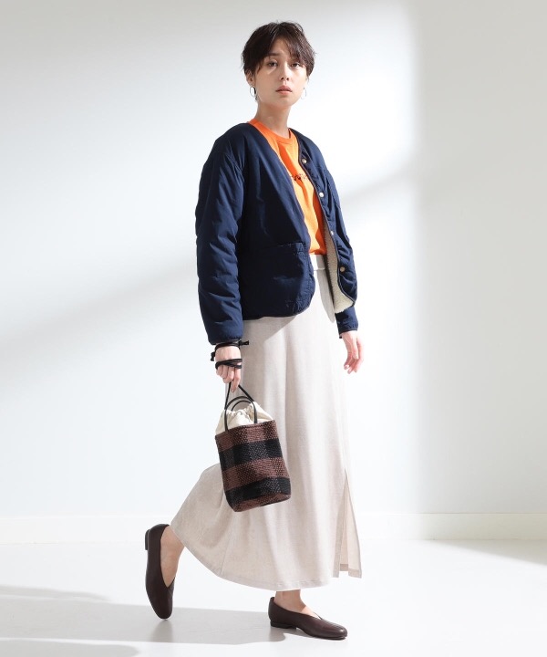 ジャケットタイプでも、サイズ感が大きくないのでジャストサイズでご購入いただくと、上からアウターが羽織りやすく1枚できてもスタイリッシュになります。