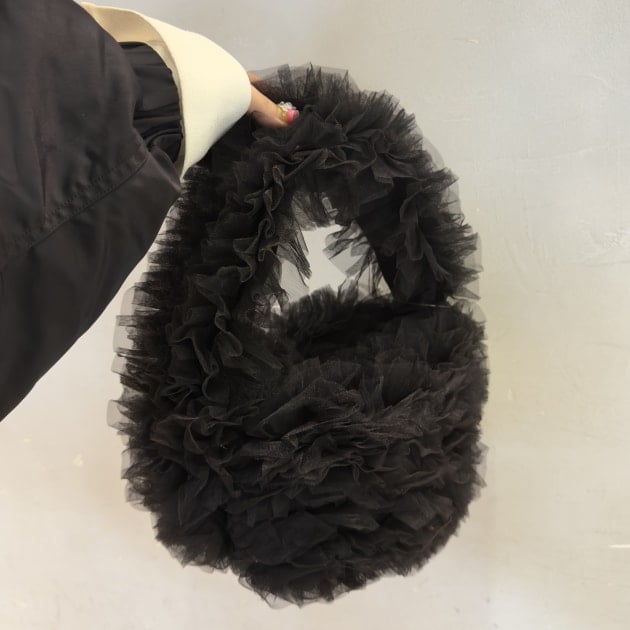 ブランドのアイコン的存在であるマーキュリーシリーズのトートバッグ。たっぷりと施されたチュールのフリルが、コーディネートをドラマチックに彩ります。