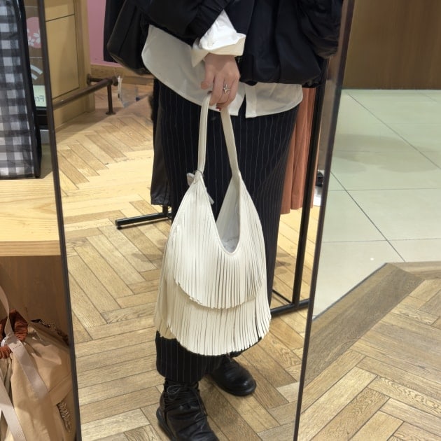 デザイン シンプルでありながら、フリンジディテールが特徴的なバッグ。