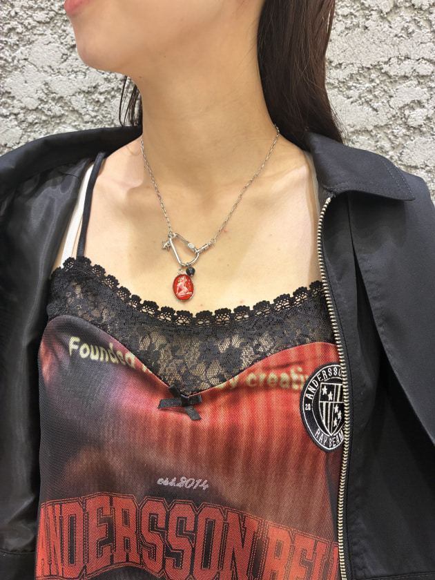 ネックレスを付けているかのようなトロンプ・ルイユがポイントです◎