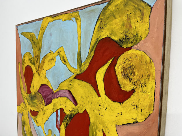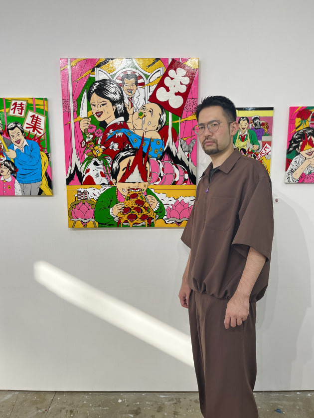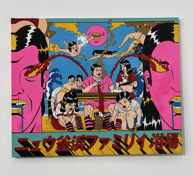 対象をデフォルメしたペインティングかつ、大胆な色使いと画面いっぱいに描かれる作品が特徴的です。