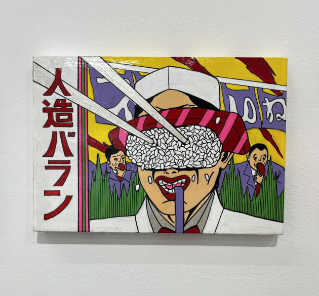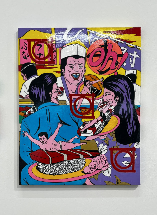 製作中、よく食べていたというお寿司がテーマの作品。画面の上に謎のマーク。