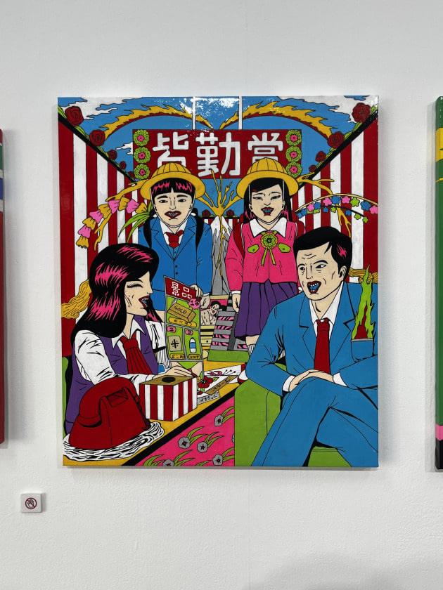 対象をデフォルメしたペインティングかつ、大胆な色使いと画面いっぱいに描かれる作品が特徴的です。