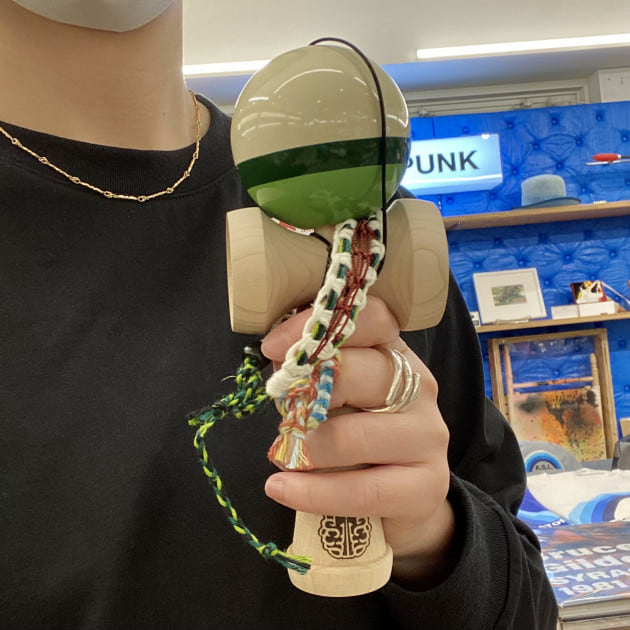 けん玉にまとわりついてる紐はどーゆーこと?って思ってた方もいらっしゃるはず。こちらは取り外し可能です。けん玉プレイ中はミサンガみたいに腕につけて、持ち運び中はけん玉に絡ませるってのが良いかもしれないですね。