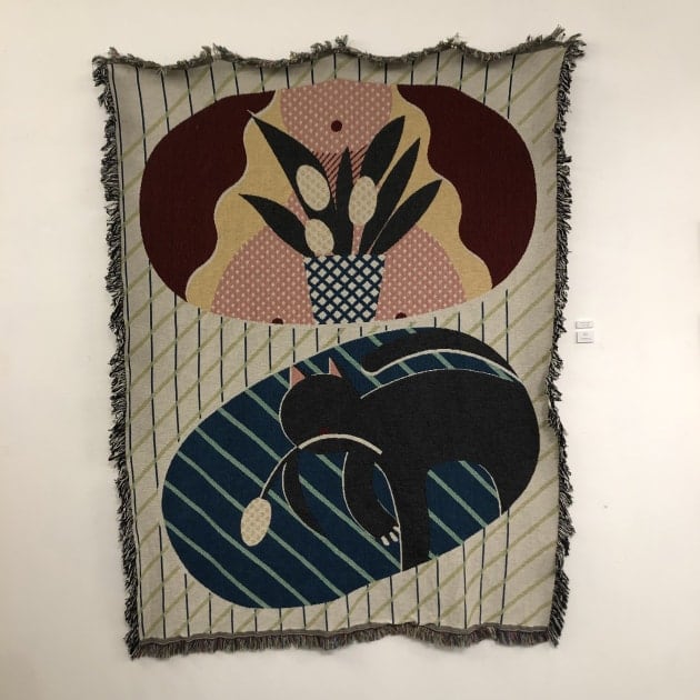 テキスタイルチックな表現も一乗さんならではでの特徴であり、今回この展示に合わせてブランケットを作りました!とても可愛いです!シングルベッドにピッタリ敷けるサイズ感です。ソファーや床など自由に使って部屋をBEST PLACEにしてください☆☆