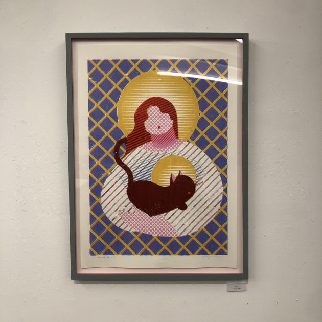 グラフィカルな構図や線を使いながらアナログ感のある作品は、シルクスクリーンならではの質感がノスタルジーな落ち着きを引き出してくれます。