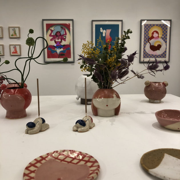 今回は初めて陶器作品も展示販売しております。絵の中の女の子が立体になりました。