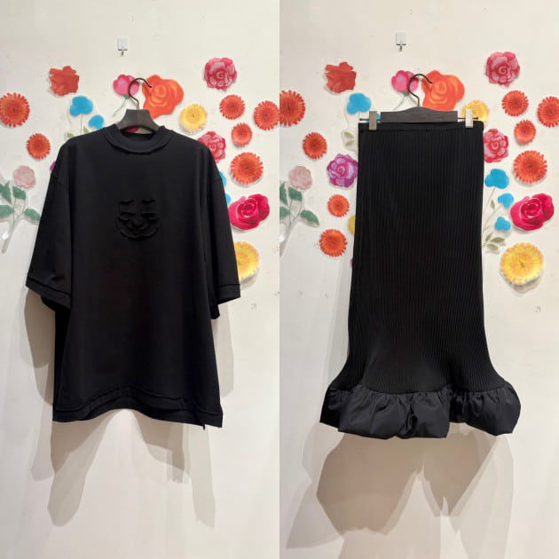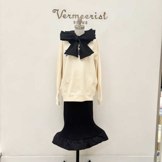 店頭のディスプレイでは、COXCOMBのスウェット・Vermeerist BEAMS オリジナルのBOWノースリーブと合わせてご紹介しております。いつものスウェットやブラウスが、スカートの個性的なシルエットで新鮮な印象になって、コーディネートがさらに楽しくなりそうです。