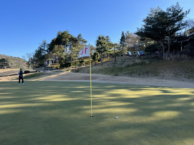 本当にきれいなゴルフ場でテンション上がり、パター練習♪