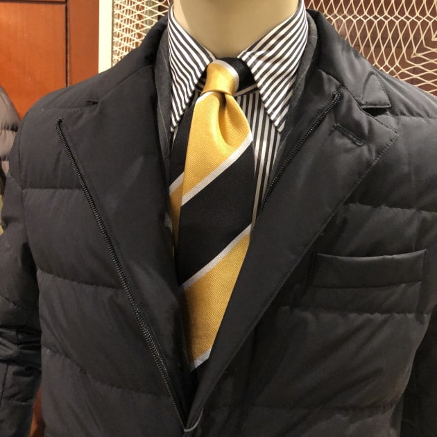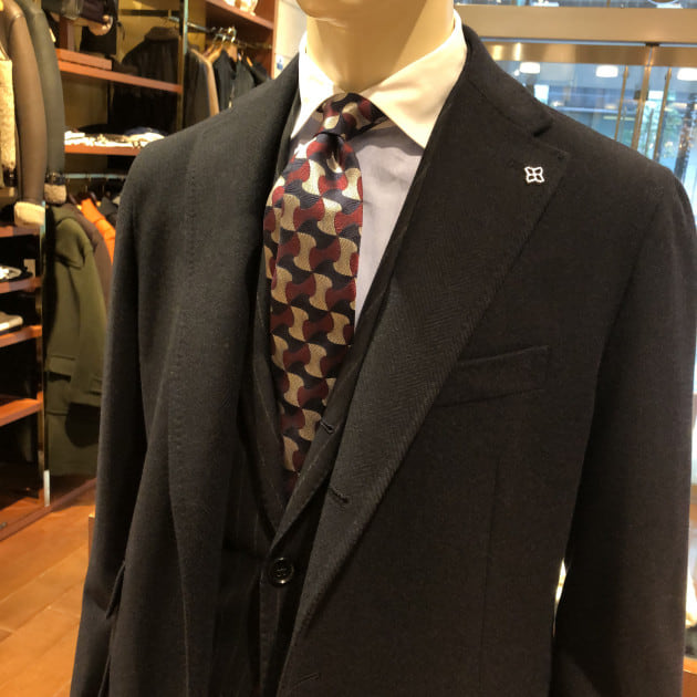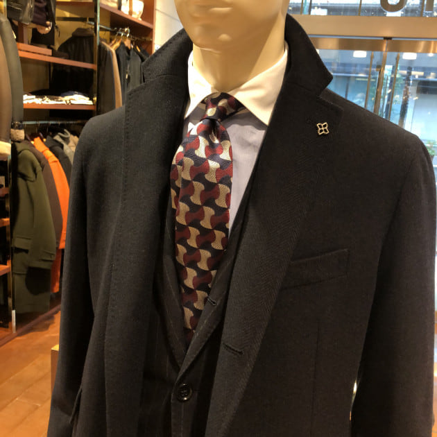 グレーのスーツや、ネイビージャケット、ブレザーとも神がかり的に合います。