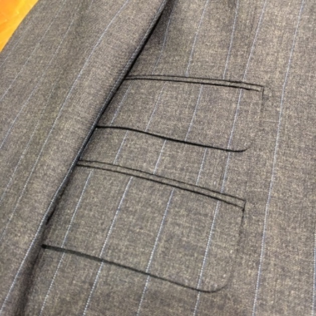 分かりやすいかと思い【PT TORINO】の方も持ってもらいましたが、ストライプのパンツが三本並ぶとすごいですね、、(^_^;)