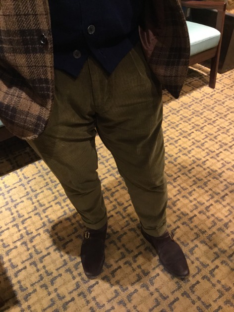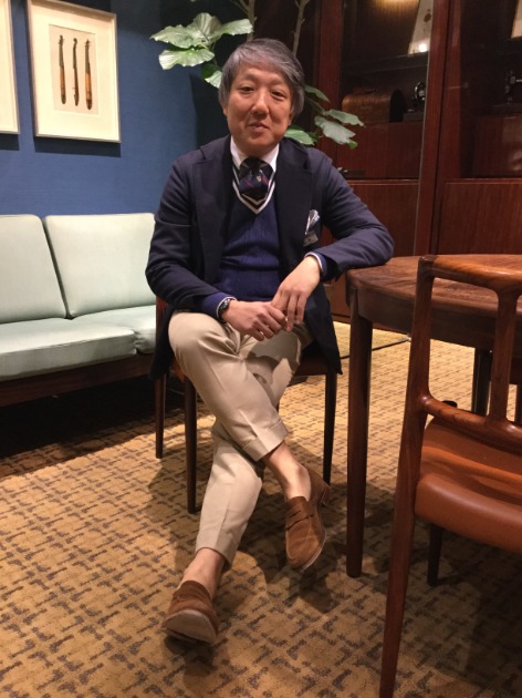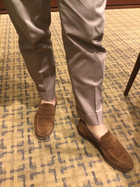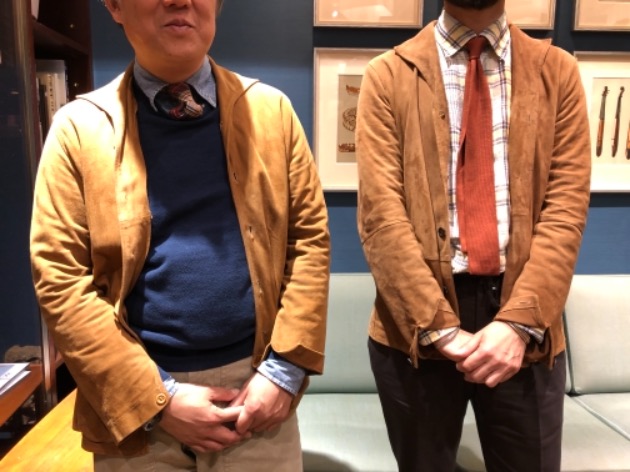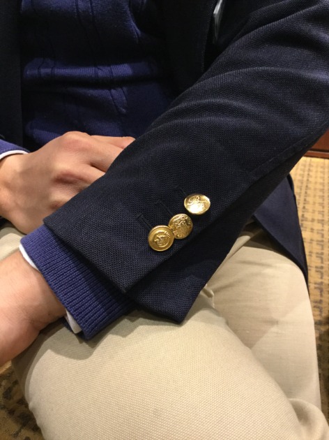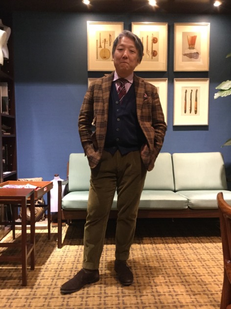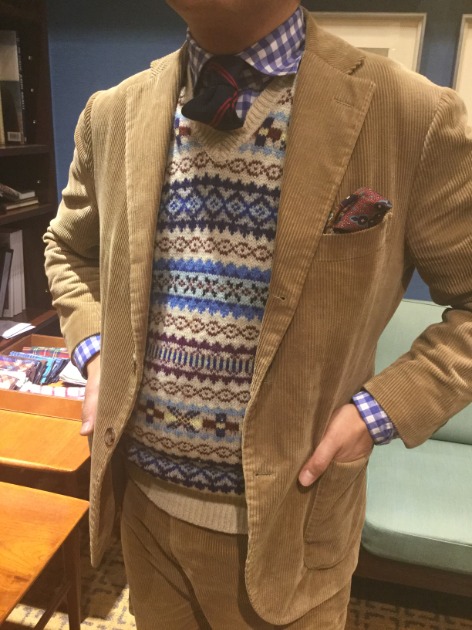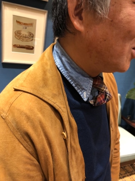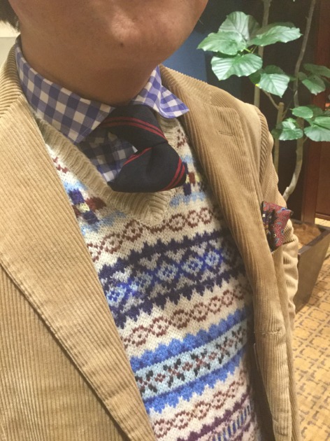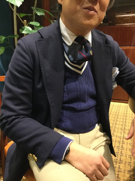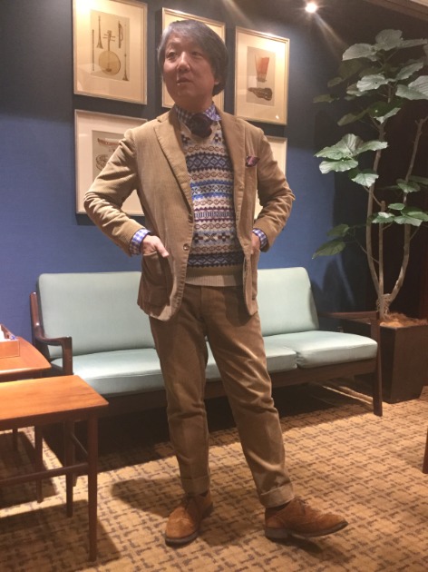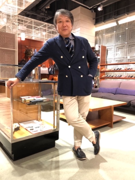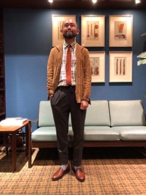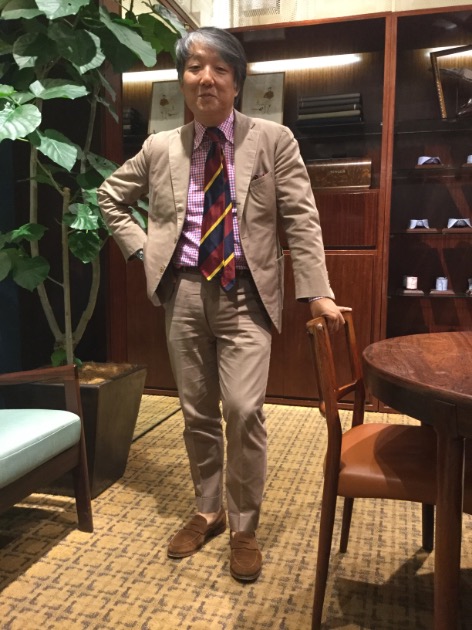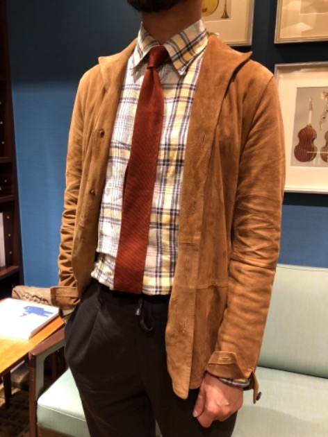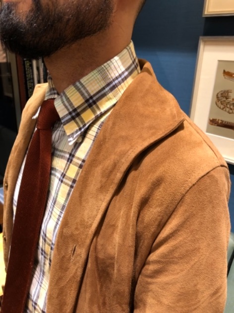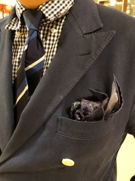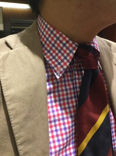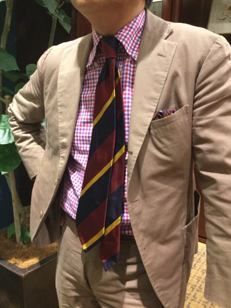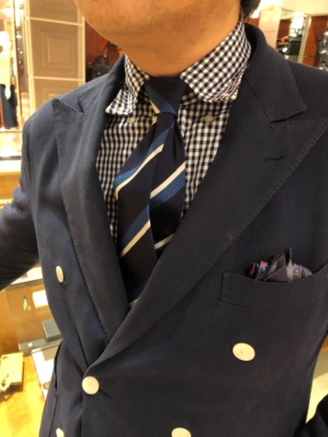 シアサッカーのスーツにポロシャツで合わせて。襟付きのアイテムなのでカジュアルだけどきちんと感はございます。
