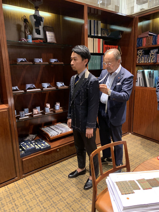 通常ですと、このモデルでオーダーは承っていないので、気に入っていただいている方はこの機会にお好きな生地とフィッティングでいかがでしょうか?