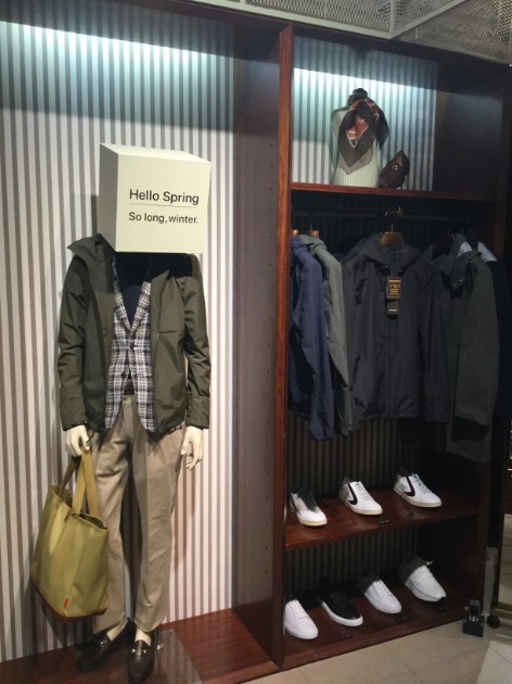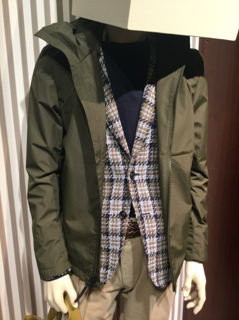 自分も着てみました。マネキンの様にはいかないですね…。
