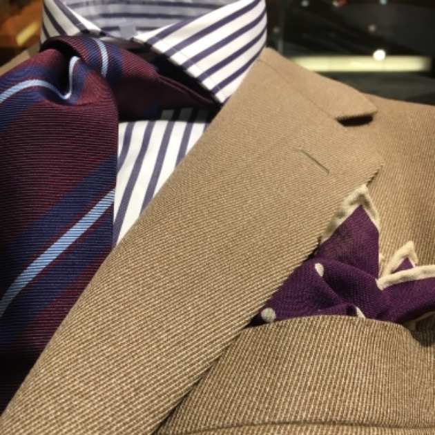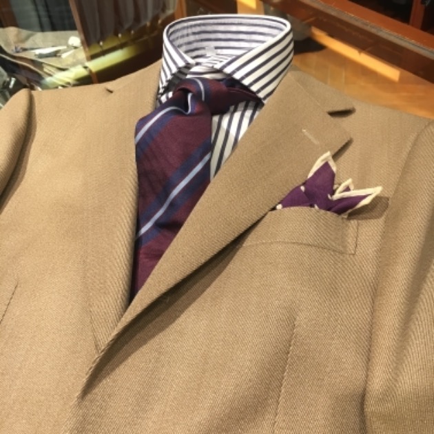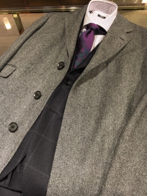スーツコーディネートはやはり、今シーズン旬のグレンプレイドスーツを採用しました。