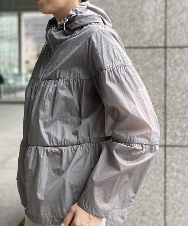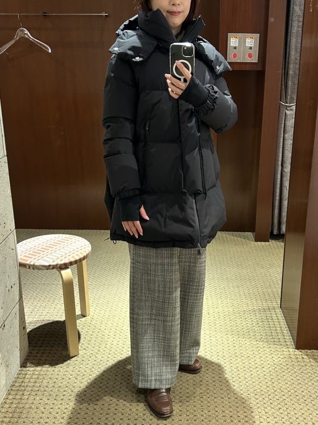 ポリエステルマイクロファイバーの2レイヤー生地を使用。撥水性・防風性・透湿性を兼ね備えた高性能メンブレンを重ね、軽やかで柔らかな着心地を実現しています。中綿にはダウンフェザーを採用し、優れた保温性を発揮します。