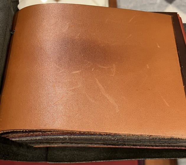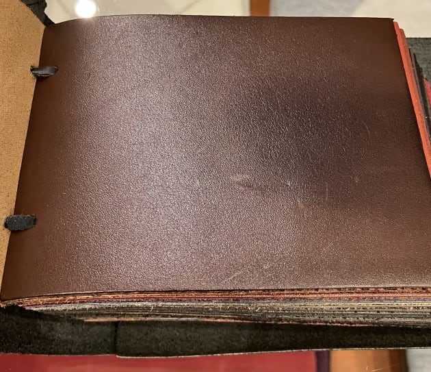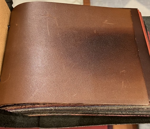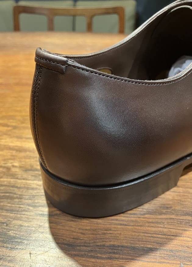 こちらは、エスプレッソ アンティーク カーフという少し前に発表された新しい革です。茶色の中では一番濃い色目と言われています。