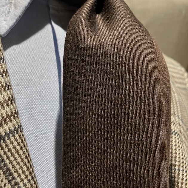 実は私、このオリーブと全く同じ生地で一昨年スーツをオーダーしました。型崩れやクリース抜けがほとんど起きず、シワにも強いので、スーツでバタバタ動き回る私にとっては最高に頼りになる相棒です。起毛感が少なく、何気にロングシーズン着用できるのも心強いポイント。オススメいたします。
