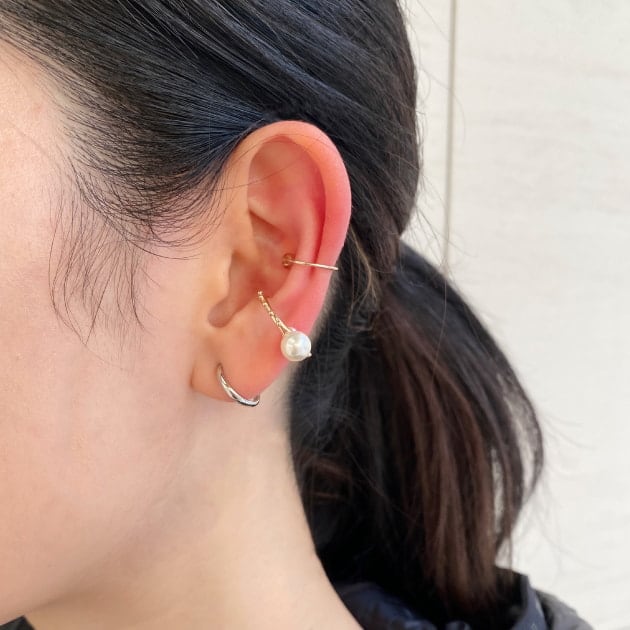 イヤーカフは、リングのようにサイズに左右されず、ピアスの穴を開けていない方にも気軽に着けていただけるのでご自分ようにはもちろんプレゼントにもおすすめです◎