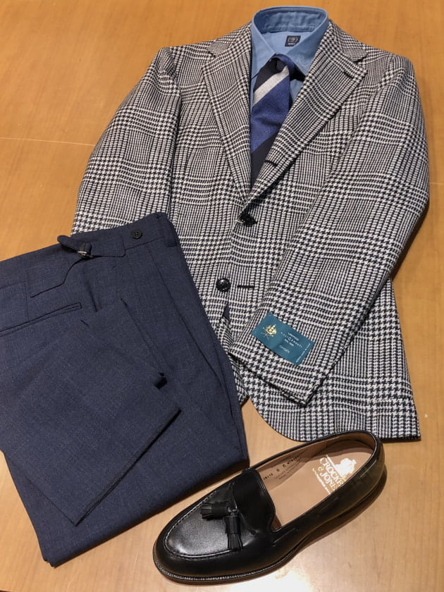 ヘリンボーンベースに、程良く間隔の空いたピッチの柄が良いですね。