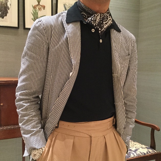 品名がデニムですが…シャンブレーで良いかと。デニムよりもこの時期過ごしやすいと思いますし、薄いブルーが清涼感があってオススメです。