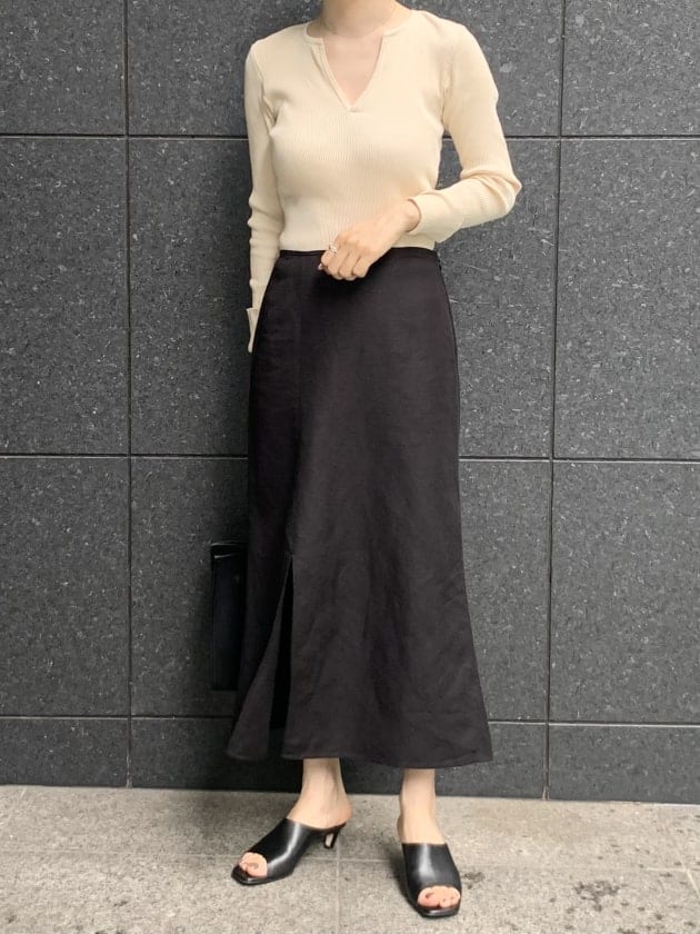 シーズンごとにシルエットが変わるお洋服が多い中、オンオフ問わず、使えるシンプルニットだからこその安定感があります。