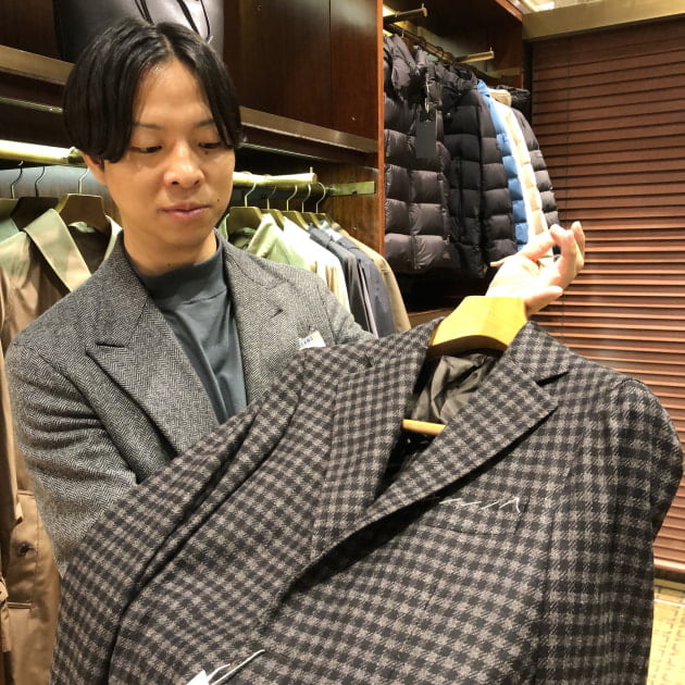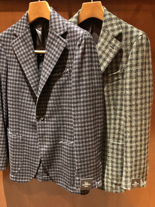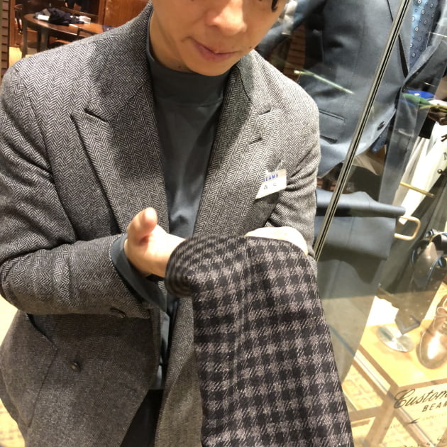 ウール素材を使用しておりますので秋冬シーズン限定になりますが、サキソニーやフランネル、ツイード素材のスーツやジャケットには相性抜群です。