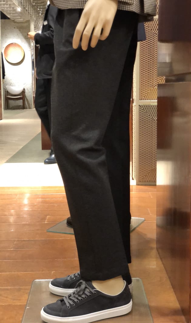 ジャケットは、<CIRCOLO1901 > 。元々はビームスの完全別注のジャケット型として誕生したこのジャケット型。現在ではブランド側のレギュラーモデルになりましたが、袖調整がしやすいよう、ボタンを付けないフラシの仕様にしています。