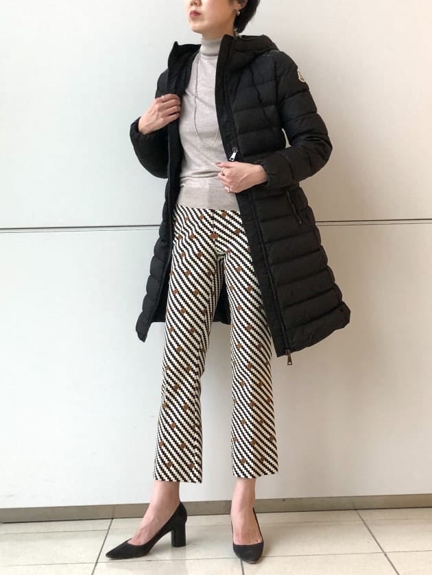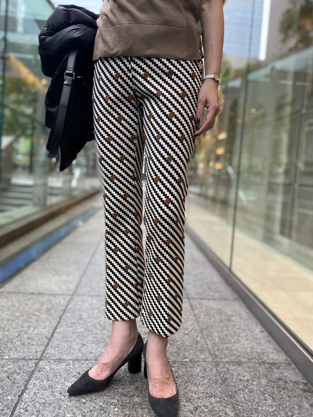 ここ数年、ボーダー柄を中心に人気のあるブラックとブラウンやベージュとの配色がモダンで洒落ています。