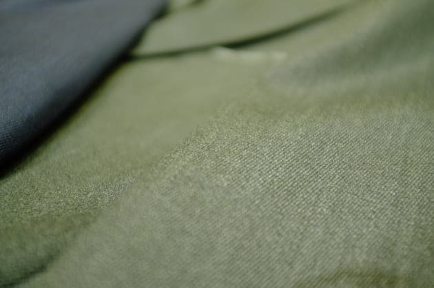 実は私、このオリーブと全く同じ生地で一昨年スーツをオーダーしました。型崩れやクリース抜けがほとんど起きず、シワにも強いので、スーツでバタバタ動き回る私にとっては最高に頼りになる相棒です。起毛感が少なく、何気にロングシーズン着用できるのも心強いポイント。オススメいたします。