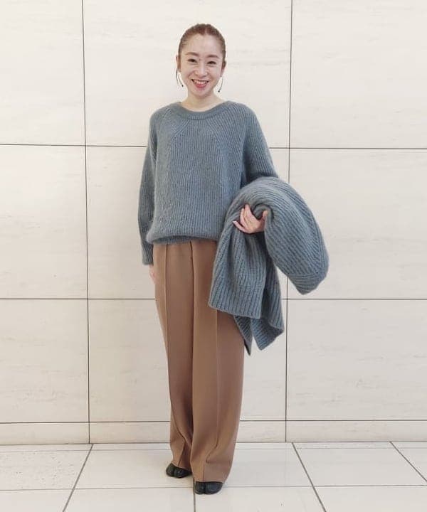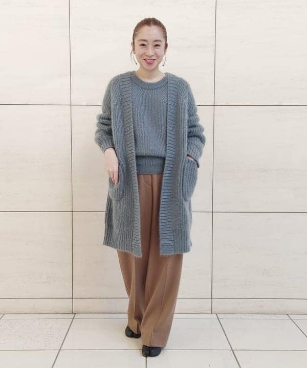 上品でマイルドな雰囲気をキープしながらも、淡いトーンの物足りなさをダークブラウンが印象を引き締めている色調や配色です。柔らかさと洒落感を演出できるアイテムで、巻くとアクセントになり小慣れ感も出ると思います。