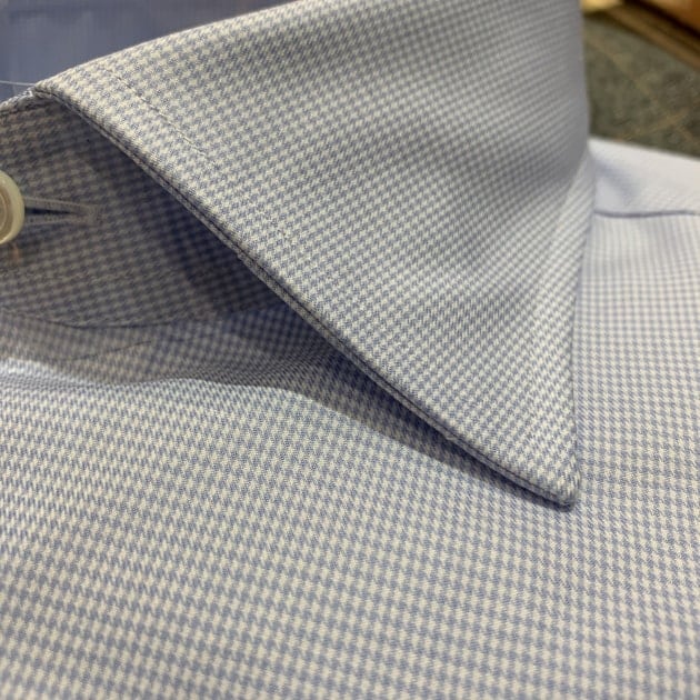 <Maria Santangelo>のマイクロハウンドトゥースです。無地ライクな柄シャツですね。汎用性の高い色柄です。