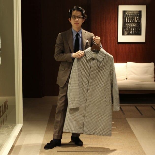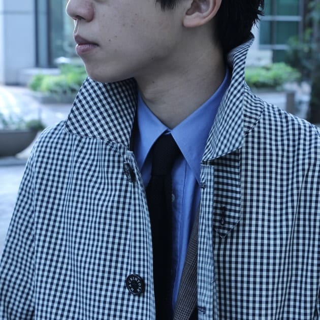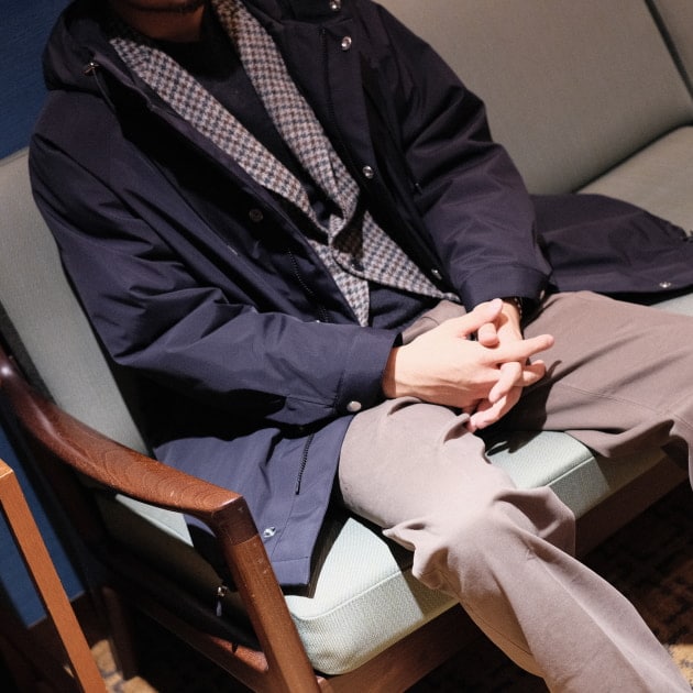 9月よりビームス ハウス 丸の内に仲間入りしたスタッフ内山が着こなす一着目が『LANGHOLMランガム』です。オーセンティックなムードながら、ショルダーラインがオフになっていたりして日常使いにぴったりです。