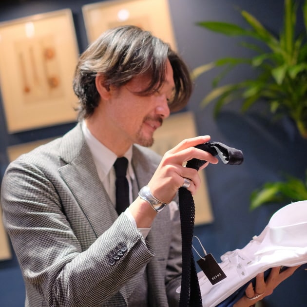 ソリッドを合わせましたが、ネイビーベースのネクタイであればコーディネートしやすいと思います。