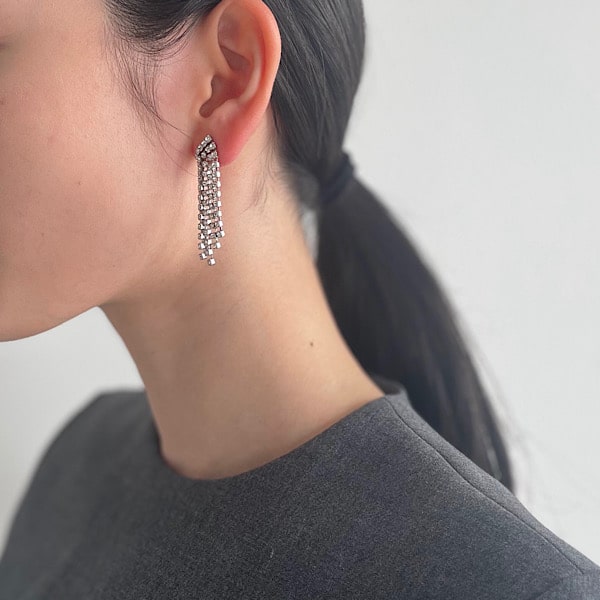 シルバーカラーなので、嫌なギラつき感はなく日常的にもつけていただけるデザインです。