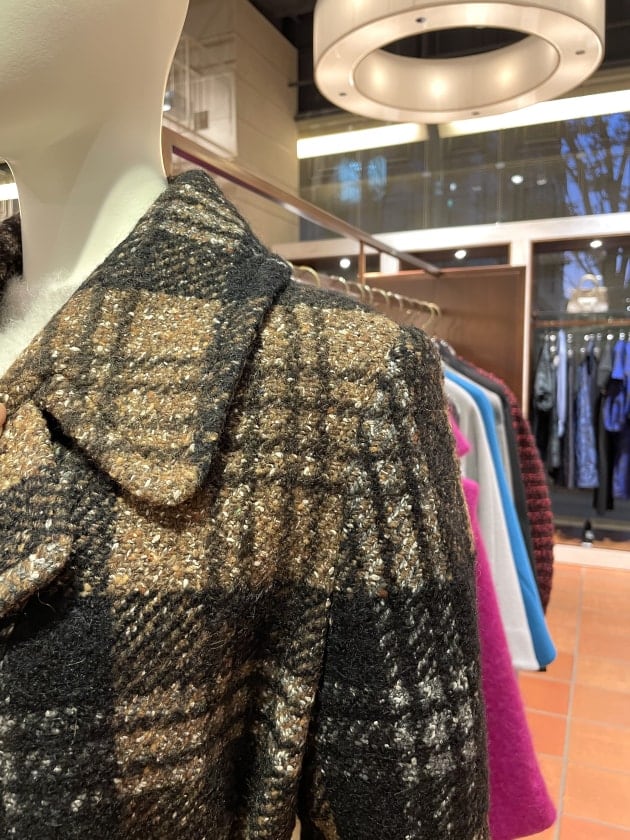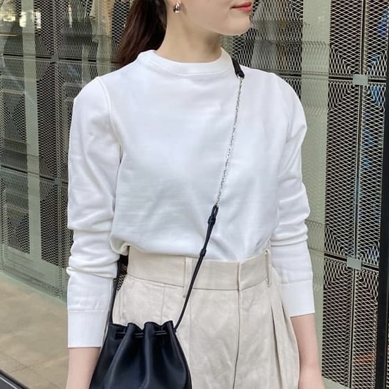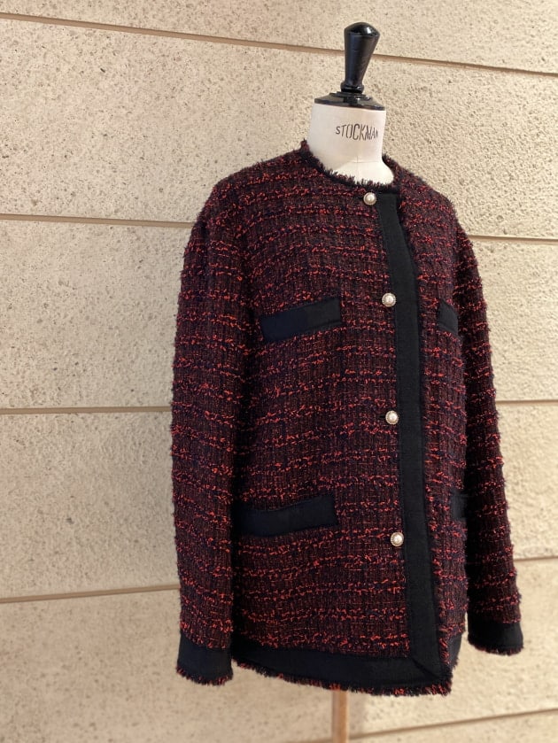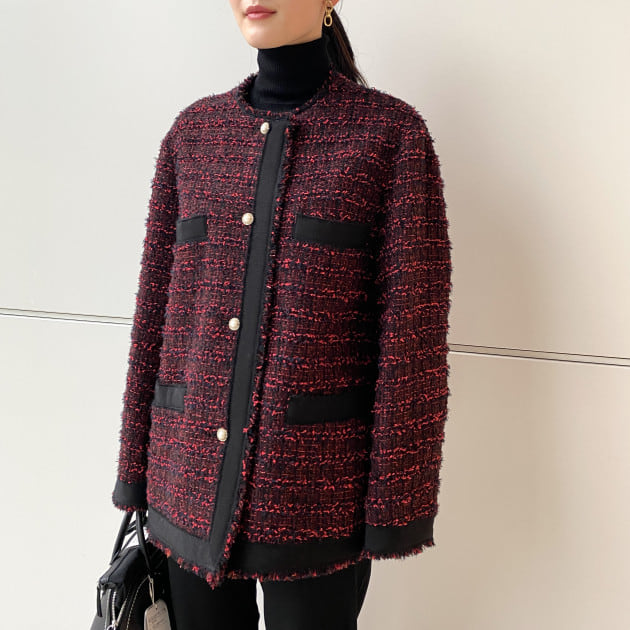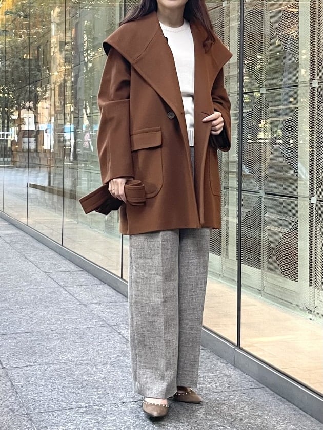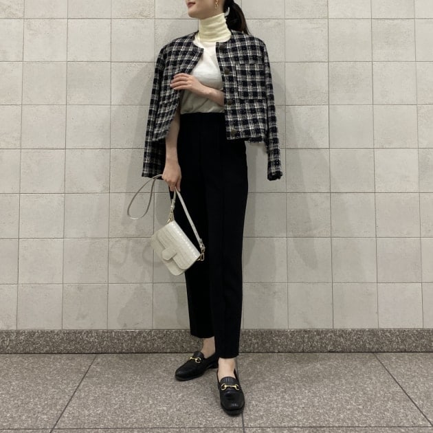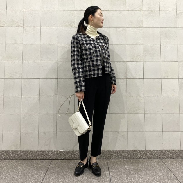 ツイードパンツと合わせて、トーンコーディネートで。