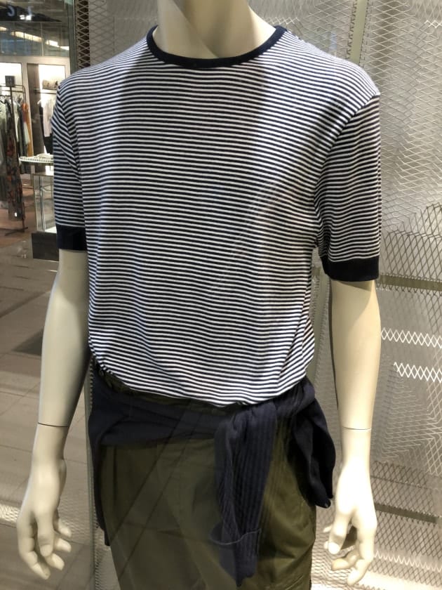<Le minor>への別注モデルは、襟周りや袖丈を着やすい設定に変更し、1970年代に使用していた色を復刻したストライプの仕様です。