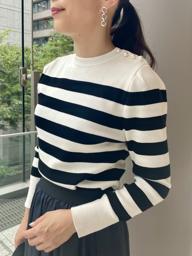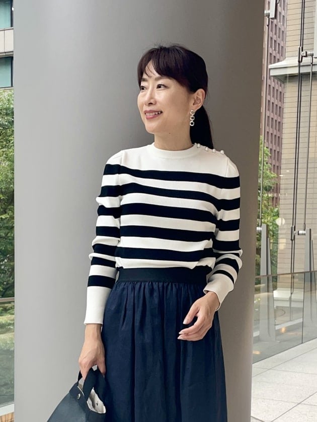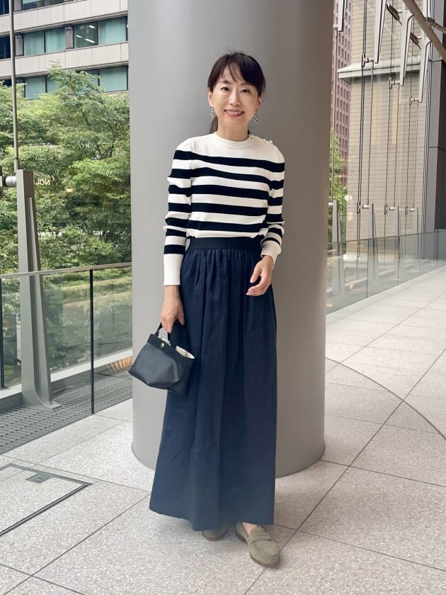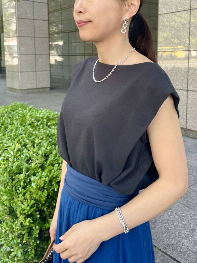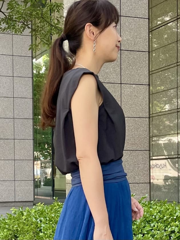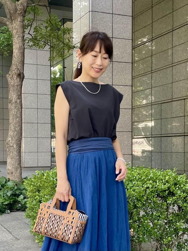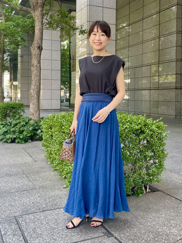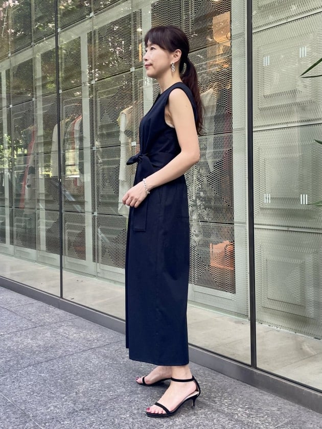 パンプスとパールネックレスを合わせればお呼ばれシーンでも活躍する一枚です。