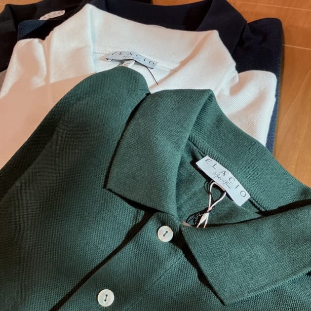 を始め、何度も紹介してまいりましたが、展開しているフランスブランド、<ELACIO(エラシオ)> の長袖ポロシャツです。