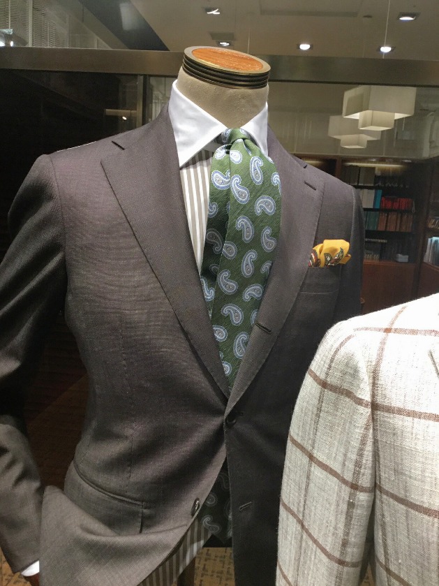 英国生地らしく重厚でハリコシがあり、シワになりにくく、とても丈夫ですし、フレスコなので通気性もある事から防雛性と清涼感に優れております。ビジネスユースに嬉しい特徴です。これからの時期にぴったりで扱いやすい生地となっております。冒険心はなくとも安定したベーシックなスーツに仕上がり、どんなシーンにも適応します。
